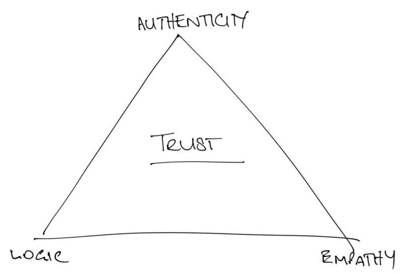 Frances Frei, professor at Harvard School of Business and pioneer of the Trust Triangle concept, agrees. She says, "In our experience, trust has three core drivers: authenticity, logic, and empathy. People tend to trust you when they believe they are interacting with the real you (authenticity), when they have faith in your judgment and competence (logic), and when they feel that you care about them (empathy). When trust is lost, it can almost always be traced back to a breakdown in one of these three drivers." [2]